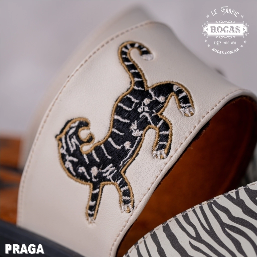Este modelo destaca por su punta estilizada y su identidad única: bordados exclusivos de animales, que reflejan la esencia de Rocas, su conexión con lo natural y su compromiso con los materiales 100% cruelty-free.??