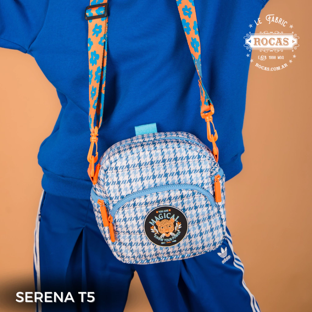 bolso de hombro o cruzado, brindándote comodidad y versatilidad. Su acceso es con diente de perro, tiene 3 bolsillos en el exterior, 1 en la cara delantera y 2 en los laterales, tambien cuenta con un bolsillo interno para guardar pertenencias mas pequeñas, tambien cuenta con una etiqueta sublimada de la identidad de Rocas.